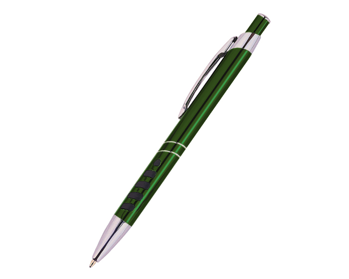 MAVI - Elegante y moderno bolígrafo metálico con cuerpo en color, punta y clip en acabo plateado. Cuenta con goma antideslizante en la parte inferior, hecha a través de detalles con diseño en relieve de color negro. Mecanismo de click.