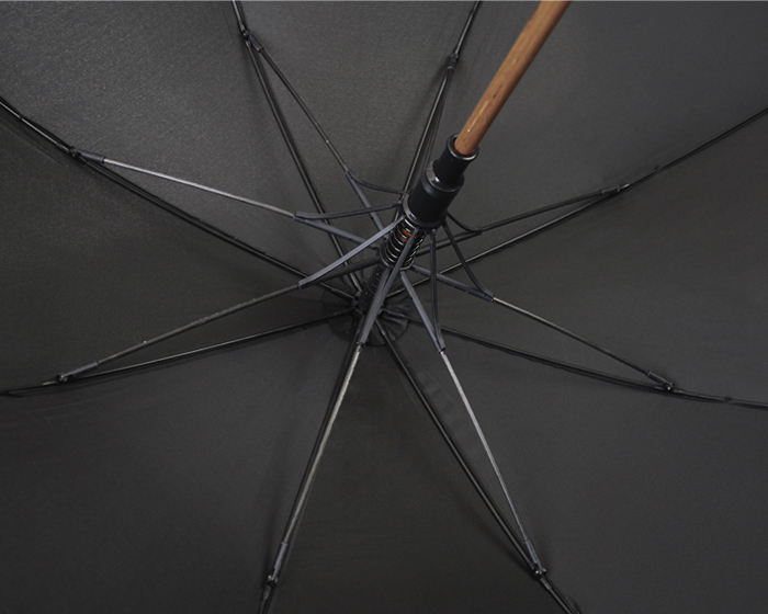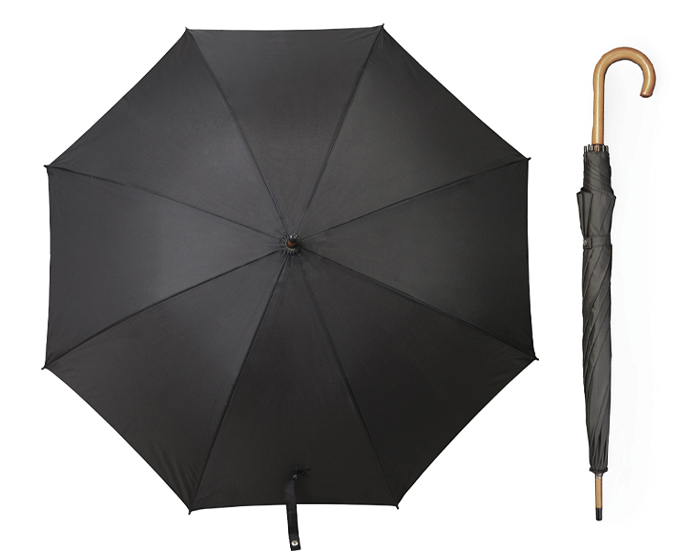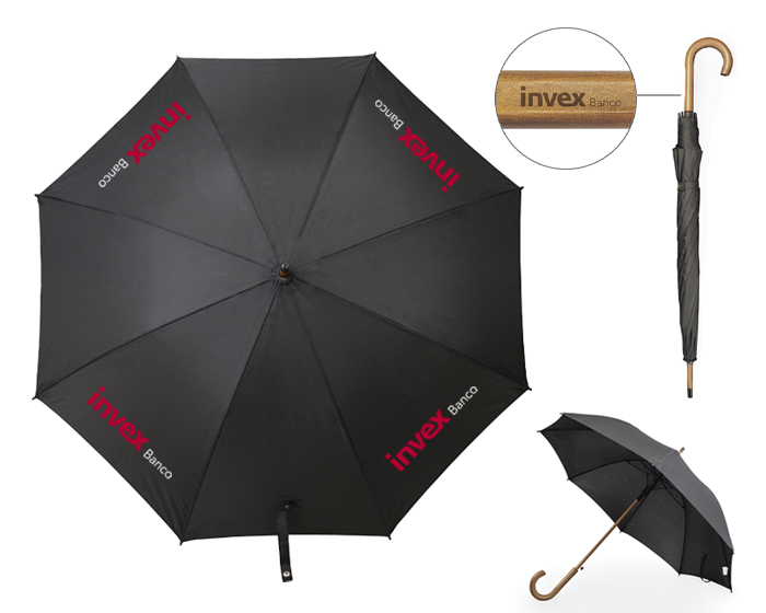 GUINEA - Paraguas de 8 gajos con botón de apertura automática, varillas de fibra de vidrio, bastón y mango curvo de madera.