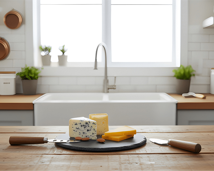 MATERIAL: Tabla: Piedra // Cuchillos: Acero inoxidable / madera de acacia. MEDIDAS: Base: Ø 15 cm / Cuchillo 1: 2.5 x 15 / Cuchillo 2: 2.1 x 16.5 / Estuche: 19.5 x 25.5 x 2.6 cm IMPRESION: GL MED. EMPAQUE: 41.5x 28.5 x 28.5 cm PESO EMPAQUE: 12.2 kgs PIEZAS EMPAQUE: 20