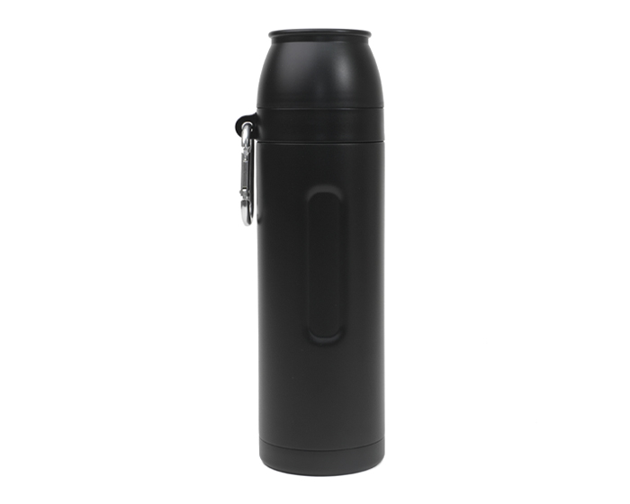 AVENTURERO - Termo de acero inoxidable de doble pared insulado al alto vacío, permite conservar por más tiempo las bebidas calientes o frías; cuenta con dos tapas de plástico, que se pueden usar como vasos para beber, un gancho mosquetón desmontable para colgarse en cualquier maleta o mochila y transportarlo fácilmente. Tiene tapa de rosca con boquilla antiderrames, la boquilla funciona presionando al centro para abrir o cerrar la misma. Es ideal para campismo y actividades al aire libre. CAP. 750 ml. Presentación: caja individual.