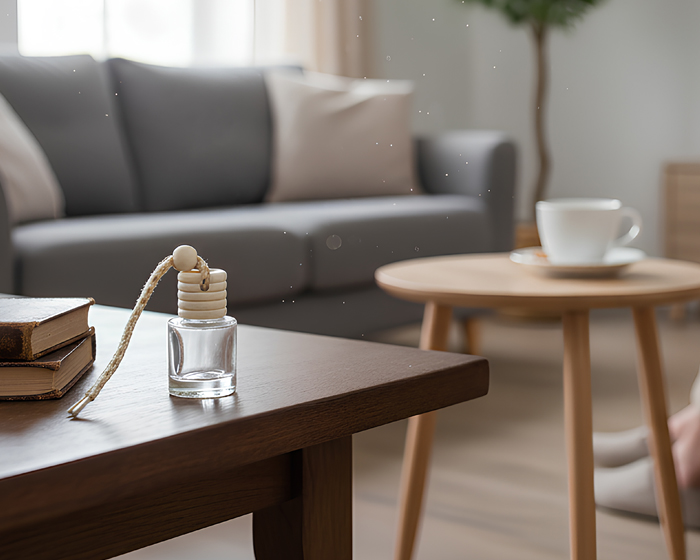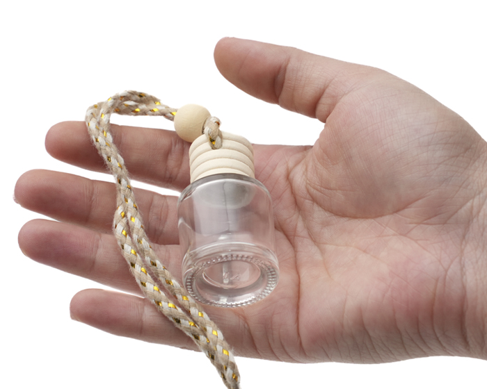 EOLO - Botella difusora de vidrio de 5 ml. para aceites aromáticos o fragancias, la tapa de madera se impregna y desprende el aroma contenido. Ideal para coches, closets o lugares pequeños. Cuenta con cinta ajustable para colgarse. NO incluye fragancia.