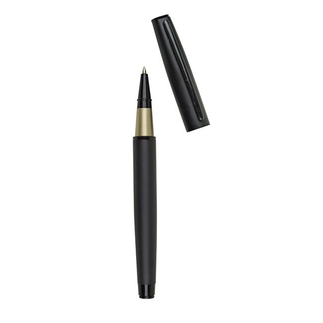WILDE Bolígrafo metálico con acabado rubber y con tapa. Incluye estuche....
