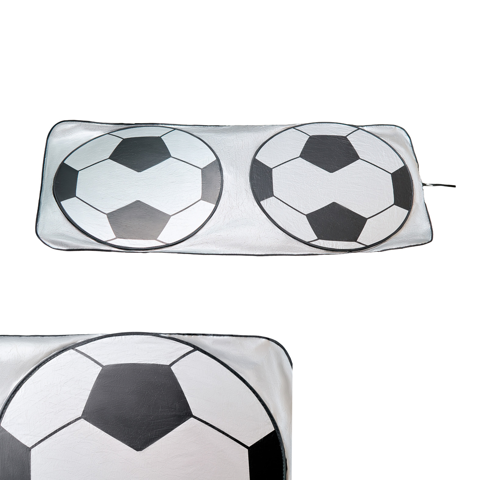 PORTERIA Parasol panorámico plegable de poliéster para auto con impresión de balón y funda para guardar.