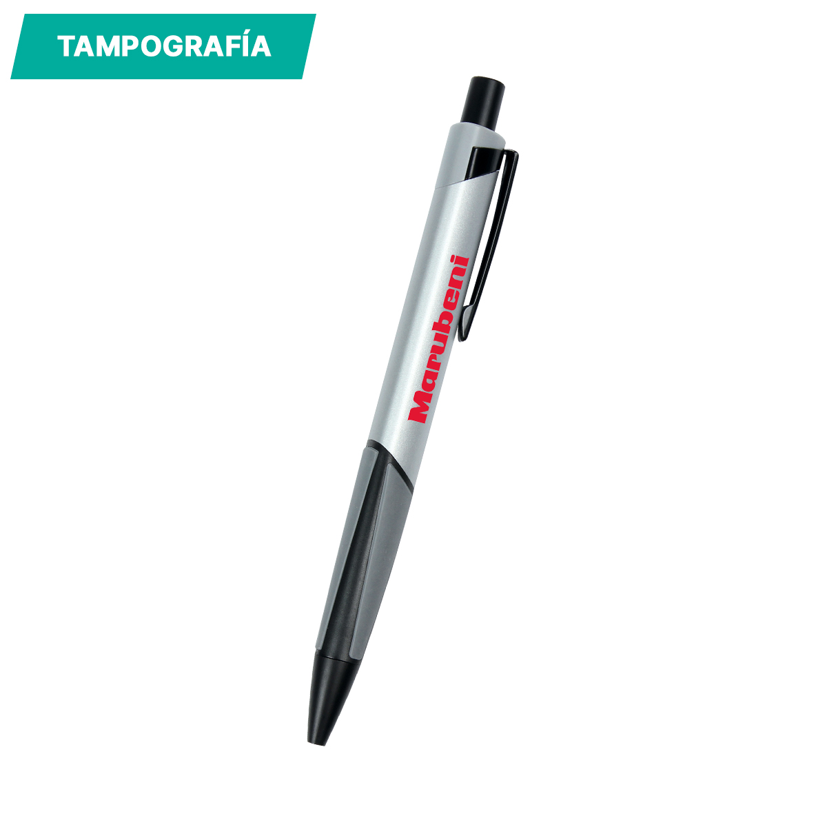 Bolígrafo en aluminio Mersin. - Bolígrafo retráctil fabricado en aluminio con forma triangular y grip tipo goma, tinta de escritura negra.