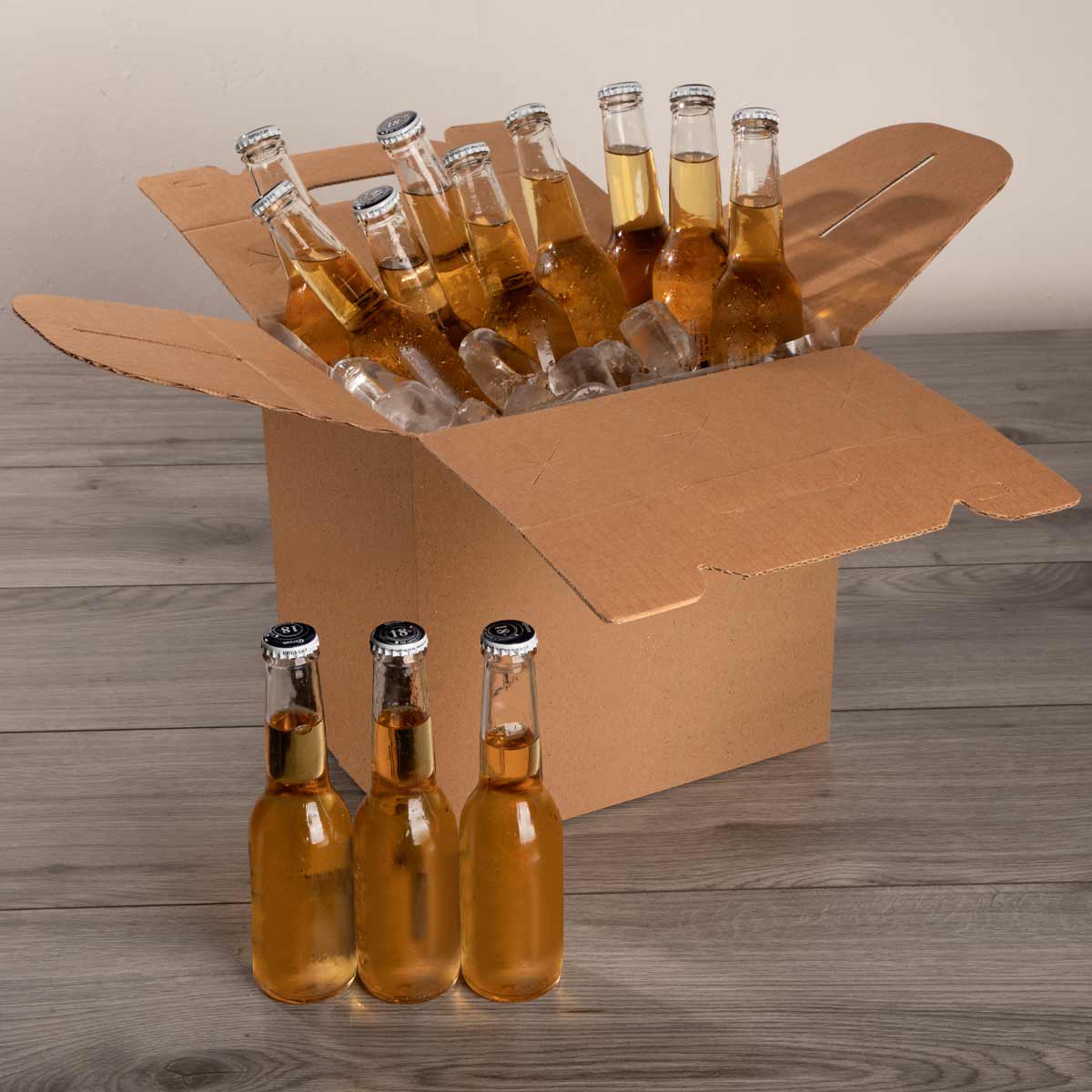 HIELERA BRISSAC - Hielera de cartón con recubrimiento impermeable. Liviana, reutilizable y fácil de armar. Interior plastificado con bolsa biodegradable. Soporta un peso de hasta 10 Kg. Capacidad de 24 latas, 12 botellas de vidrio o 6 Botellas de 1 litro.