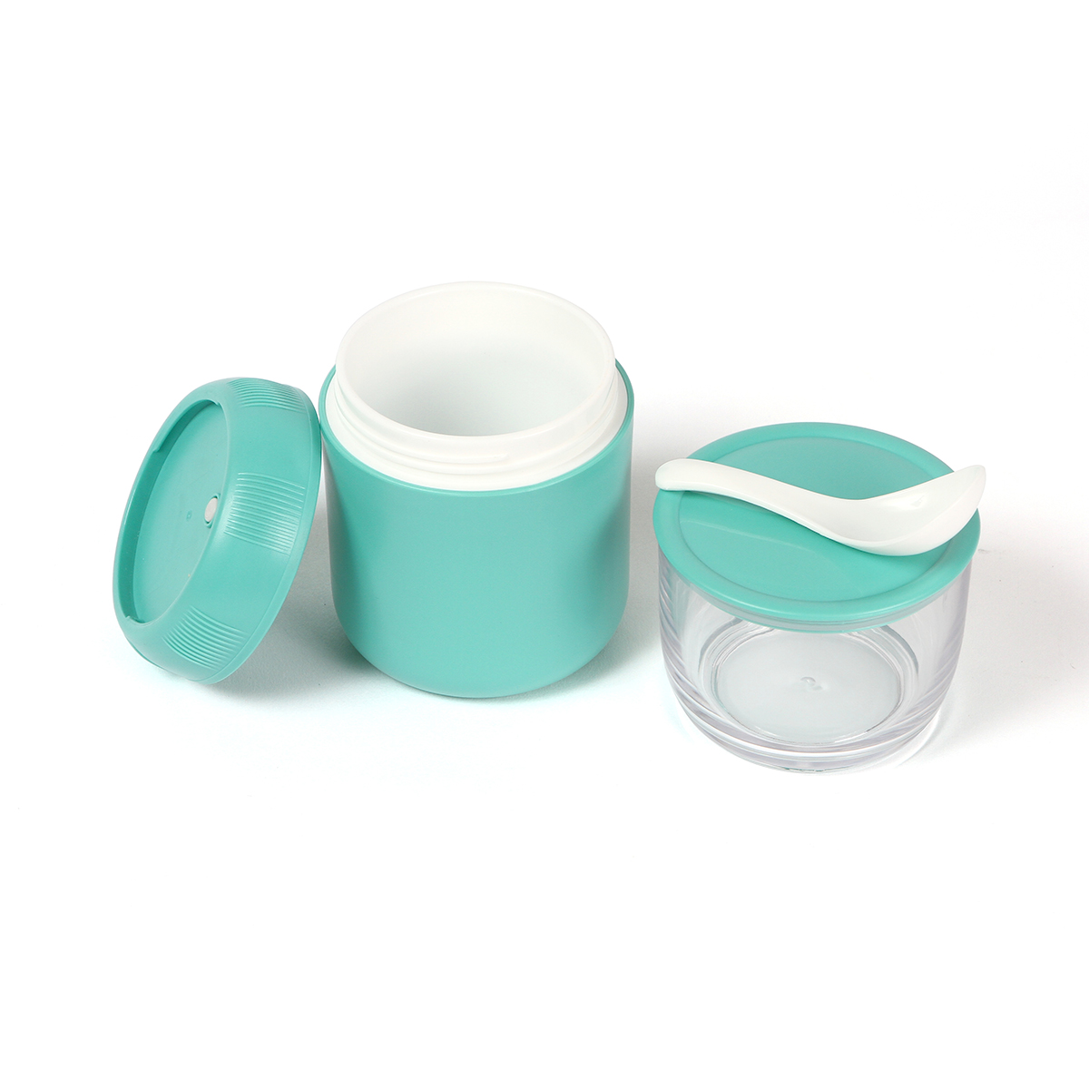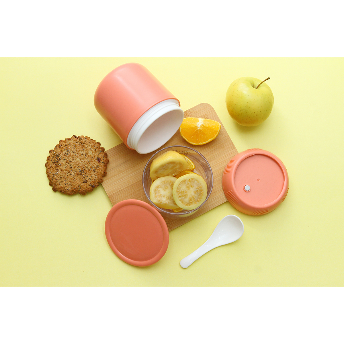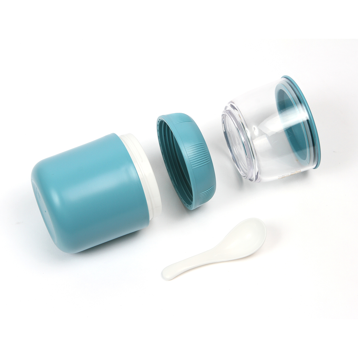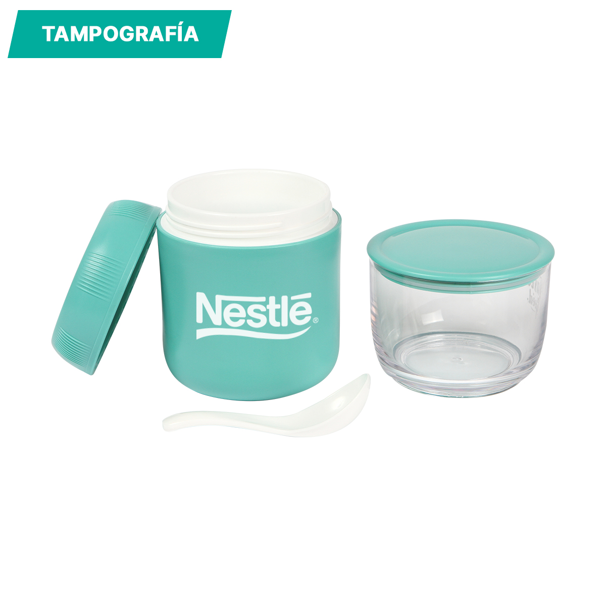 Contenedor Grimsby. - Contenedor de alimentos fabricado en polipropileno (PP). Incluye dos recipientes pequeños, uno de ellos traslúcido y una cuchara. Capacidad por ambos contenedores es de 710 ml.