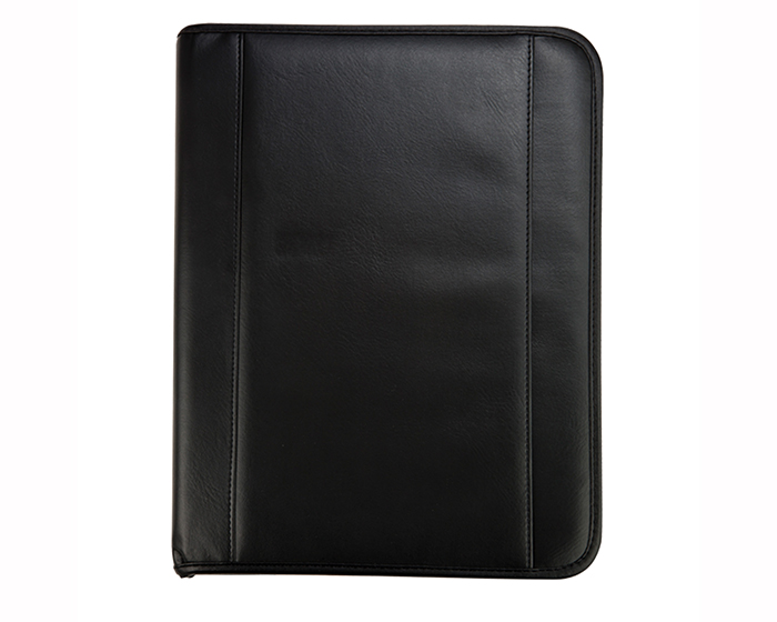 OMEGA - Carpeta ejecutiva con cierre, block de 29 hojas rayadas, notas y banderas adhesivas, porta documentos, divisiones para tarjetas, calculadora y cinta elástica para sujetar pluma.