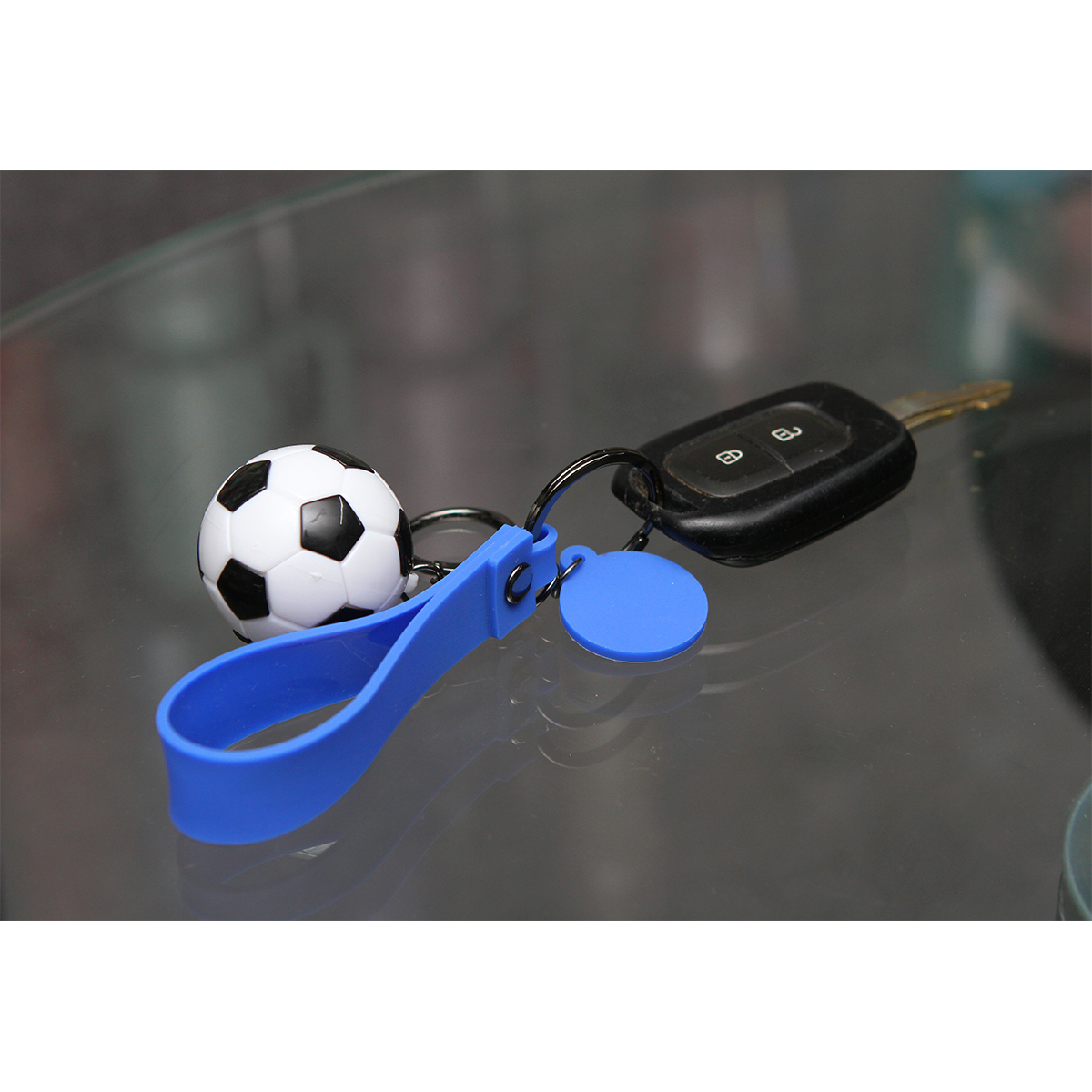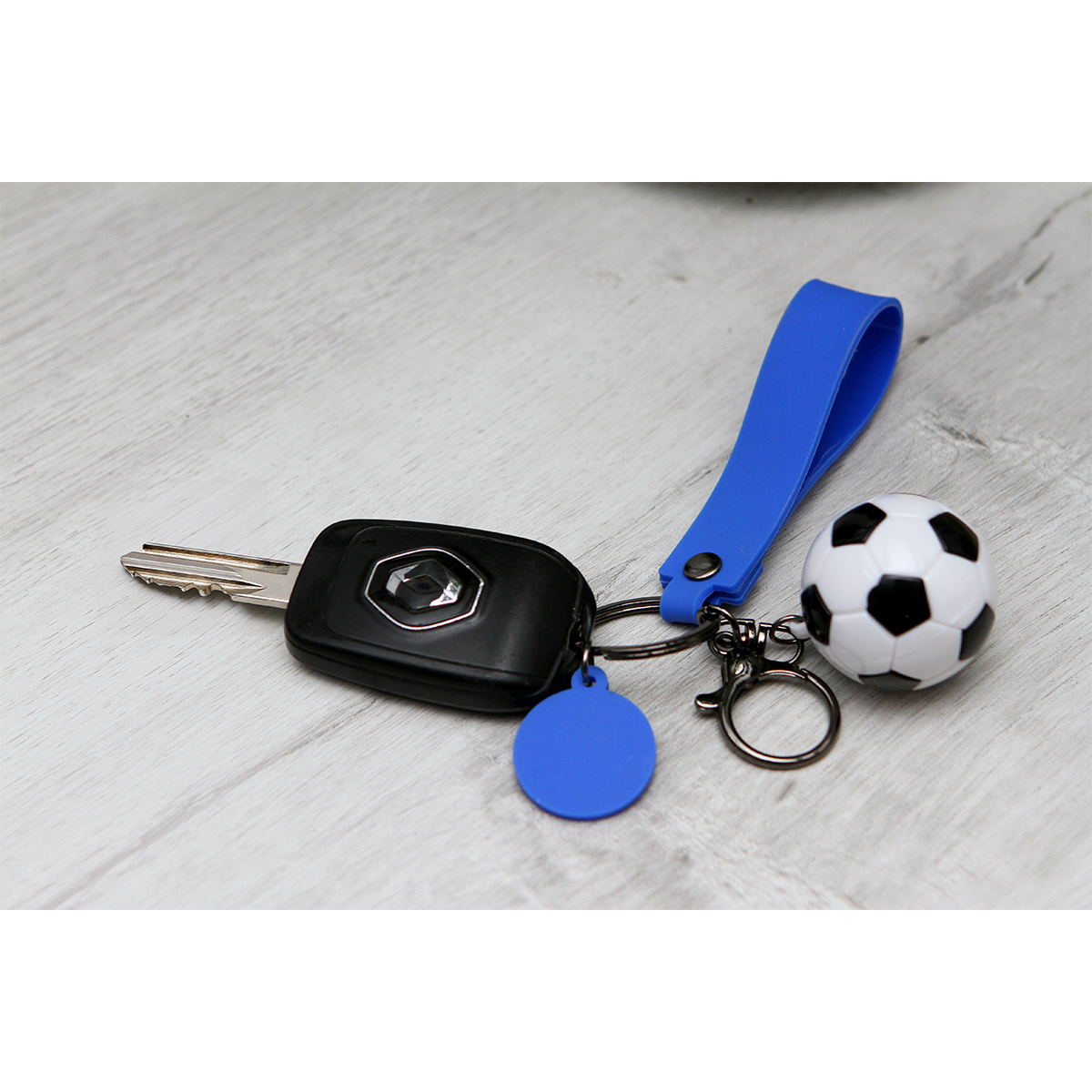 Llavero Hythe. - Llavero fabricado en plástico PVC con diseño de balón de fútbol. resistente, ligero y perfecto para fans de este deporte. Ideal para mochilas, llaves o como detalle promocional.