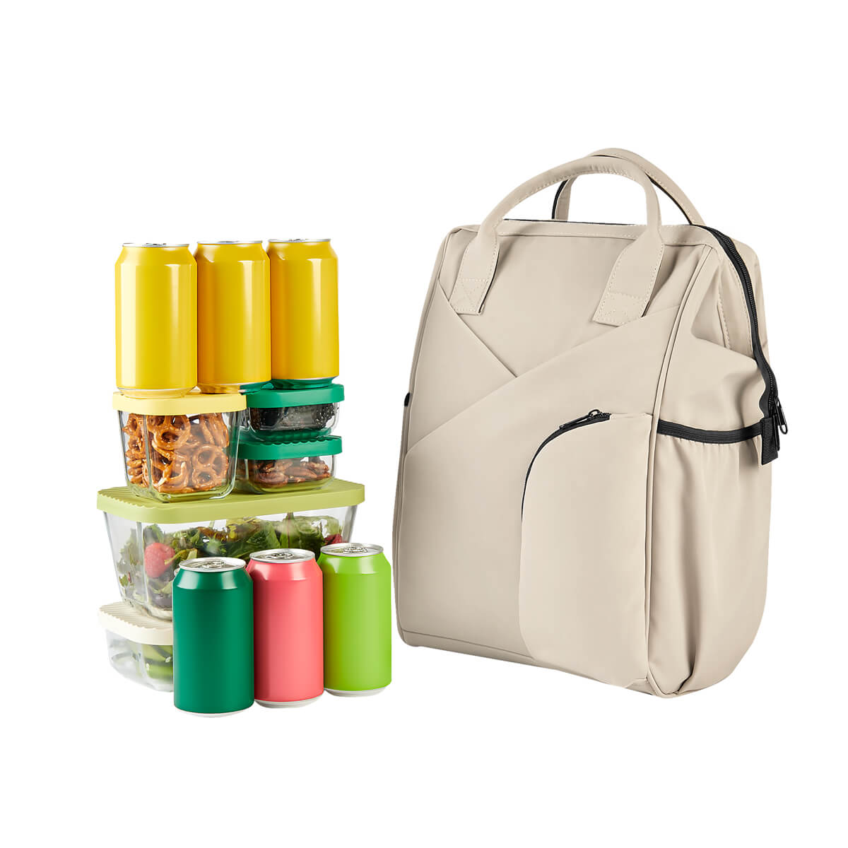 MOCHILA-LONCHERA VERTEX - Lonchera práctica y versátil de gran capacidad. Su interior plastificado, facilita su limpieza y conserva mejor tus alimentos. El compartimiento principal, cuenta con un marco metálico, lo que brinda mayor comodidad al introducir o extraer lo que necesites. El diseño cruzado con bolsillo oculto en la parte frontal, le brindan un toque moderno y funcional, mientras que el compartimento frontal con cierre, es perfecto para almacenar accesorios pequeños. Sus dos bolsillos laterales, son ideales para termos o botellas. Gracias a sus asas ajustables, también puedes llevarla cómodamente como mochila, convirtiéndola en la compañera ideal para tu día a día. Capacidad 20 latas .