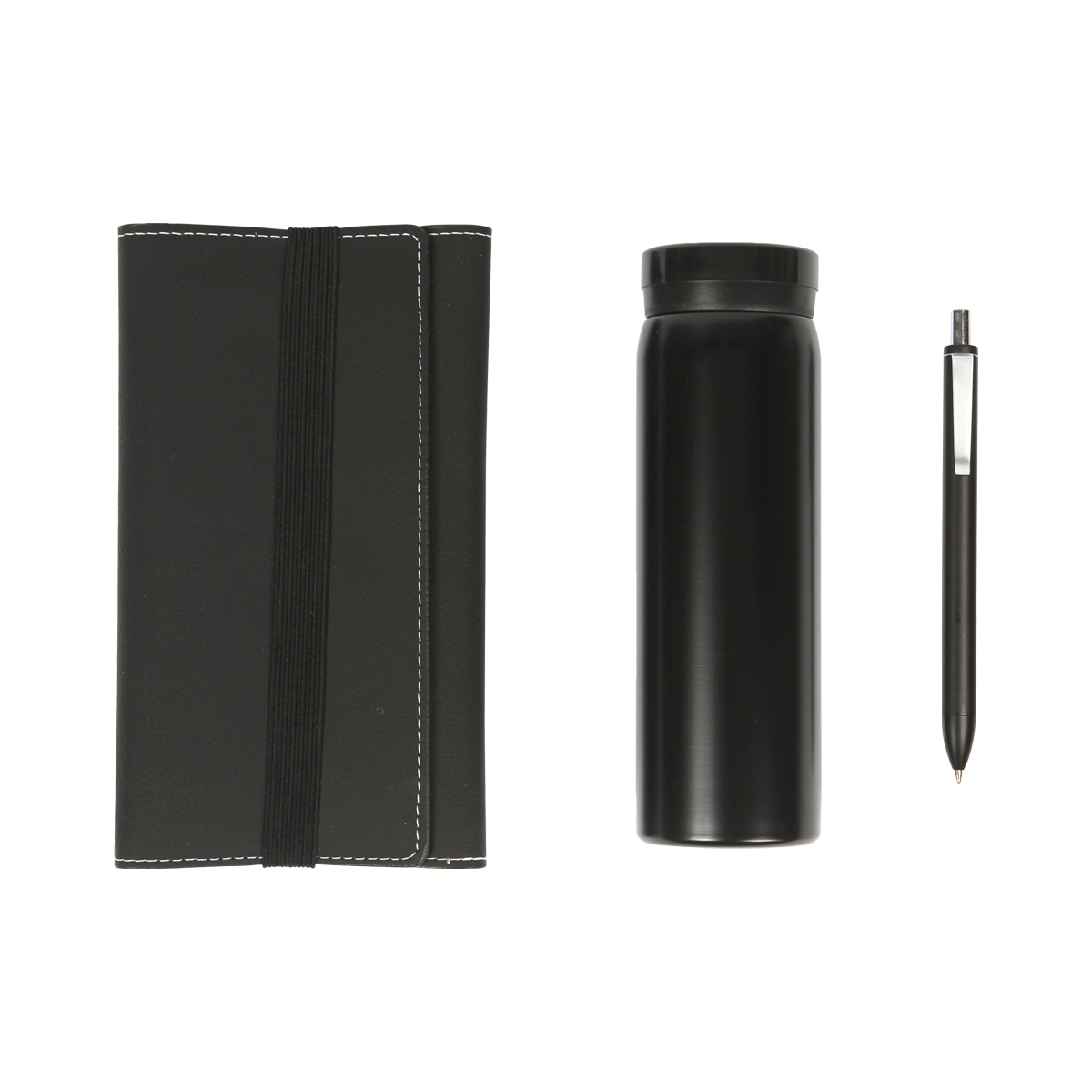 Set ejecutivo Bower. - Set ejecutivo, incluye libreta con cubierta fabricada en curpiel con 80 hojas de 70g, bolígrafo con barril plástico de apariencia metálical y termo de doble pared fabricado en acero inoxidable. Incluye caja de regalo color negro.