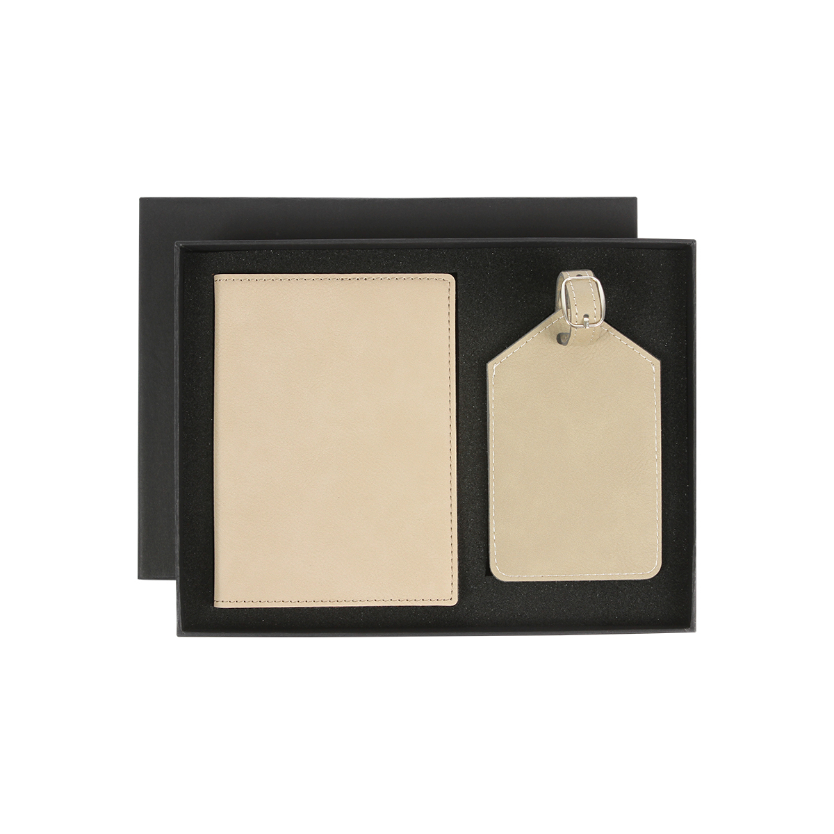 Set Wootton. - Set de regalo incluye un porta pasaportes y un identificador de maleta fabricados en curpiel. El identificador rectangular tiene una correa ajustable.