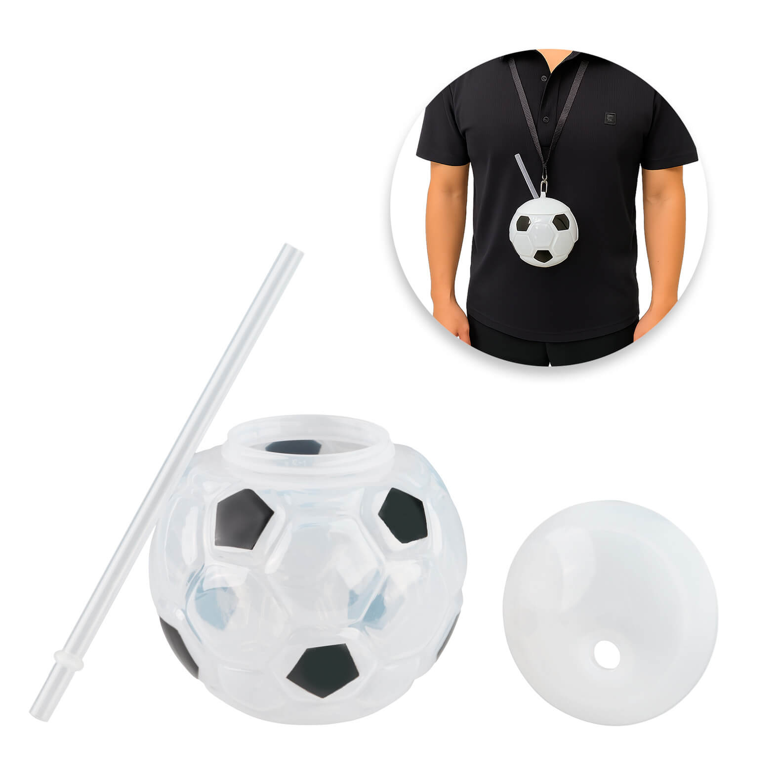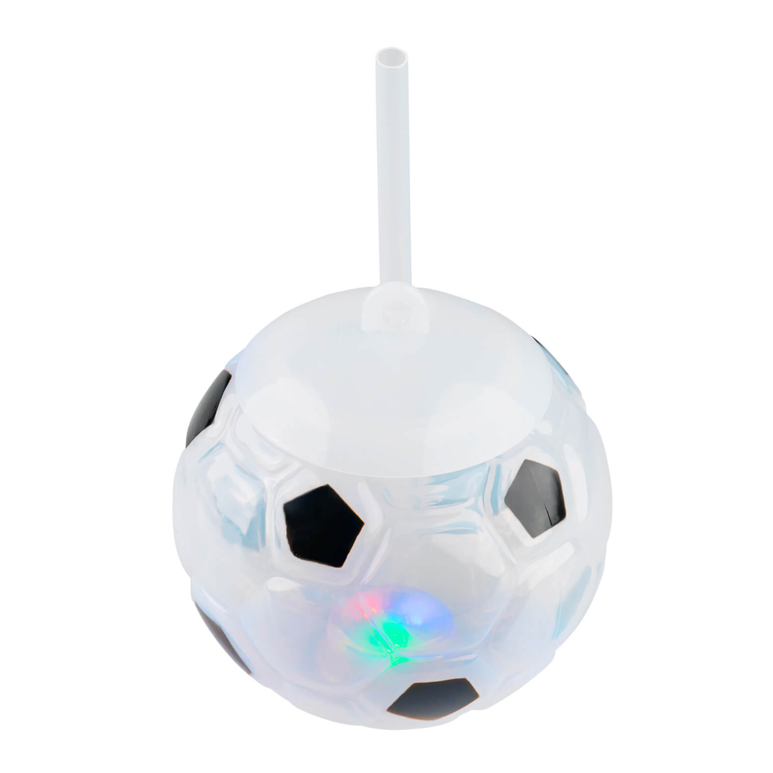 GAMBETA Cilindro de plástico con forma de balón de soccer, listón, popote y luz de 3 colores.