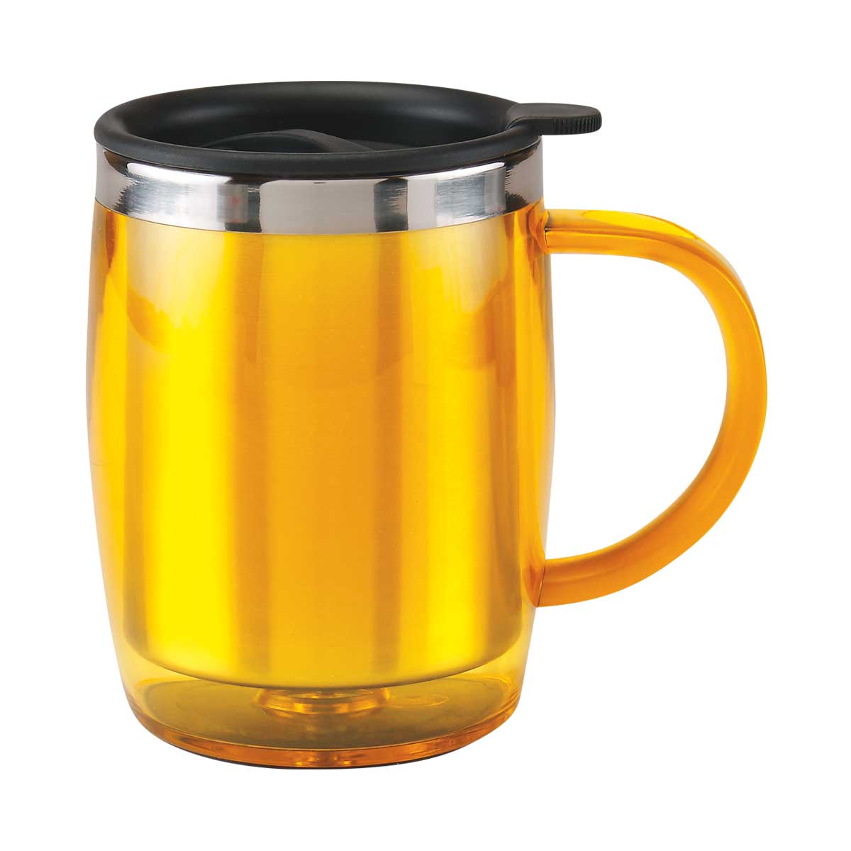 TAZA TÉRMICA BURGOS - Doble pared. Pared interna de acero inoxidable y externa de plástico. Incluye válvula de seguridad giratoria con tapa de presión. Incluye caja individual. No usar en microondas ni lavavajillas.