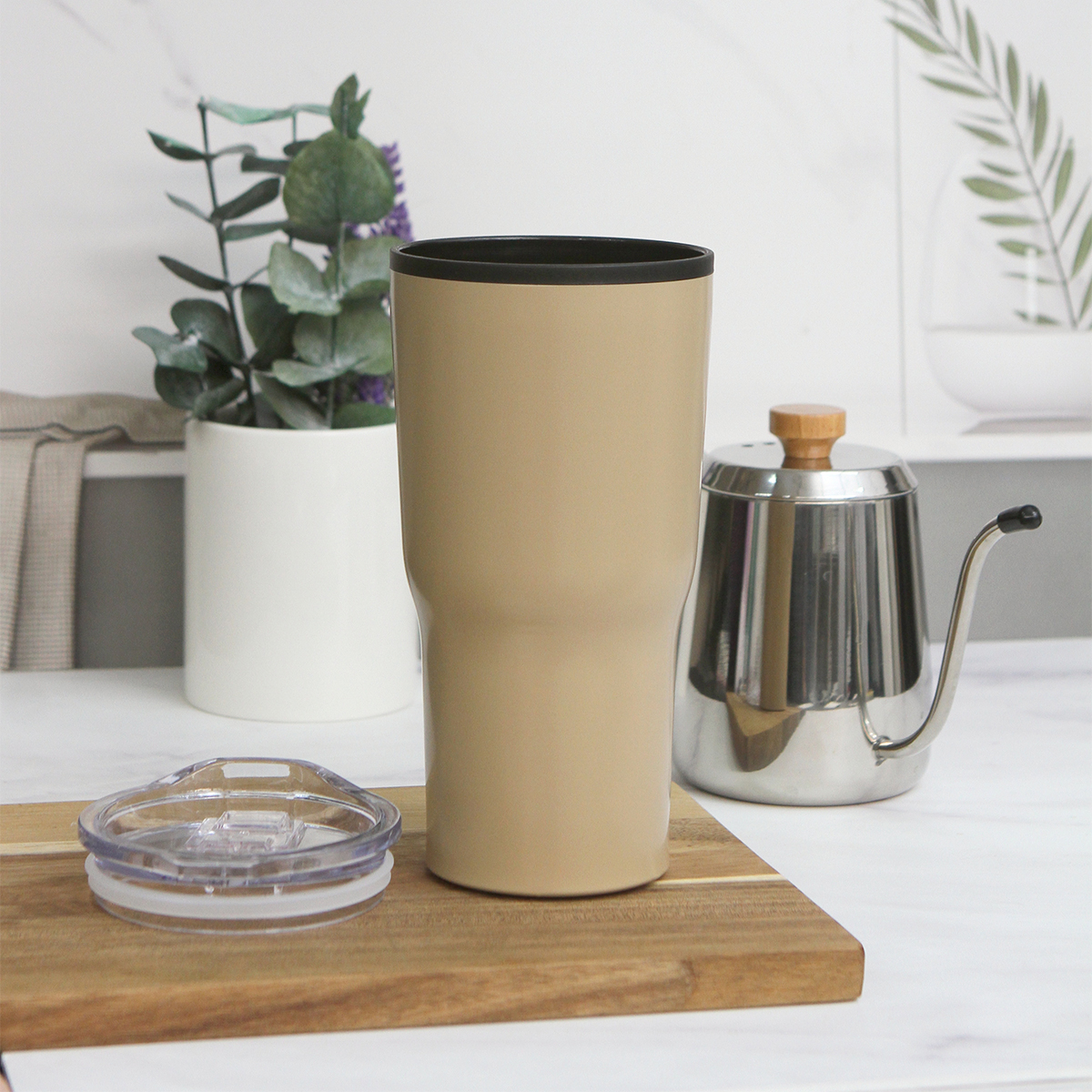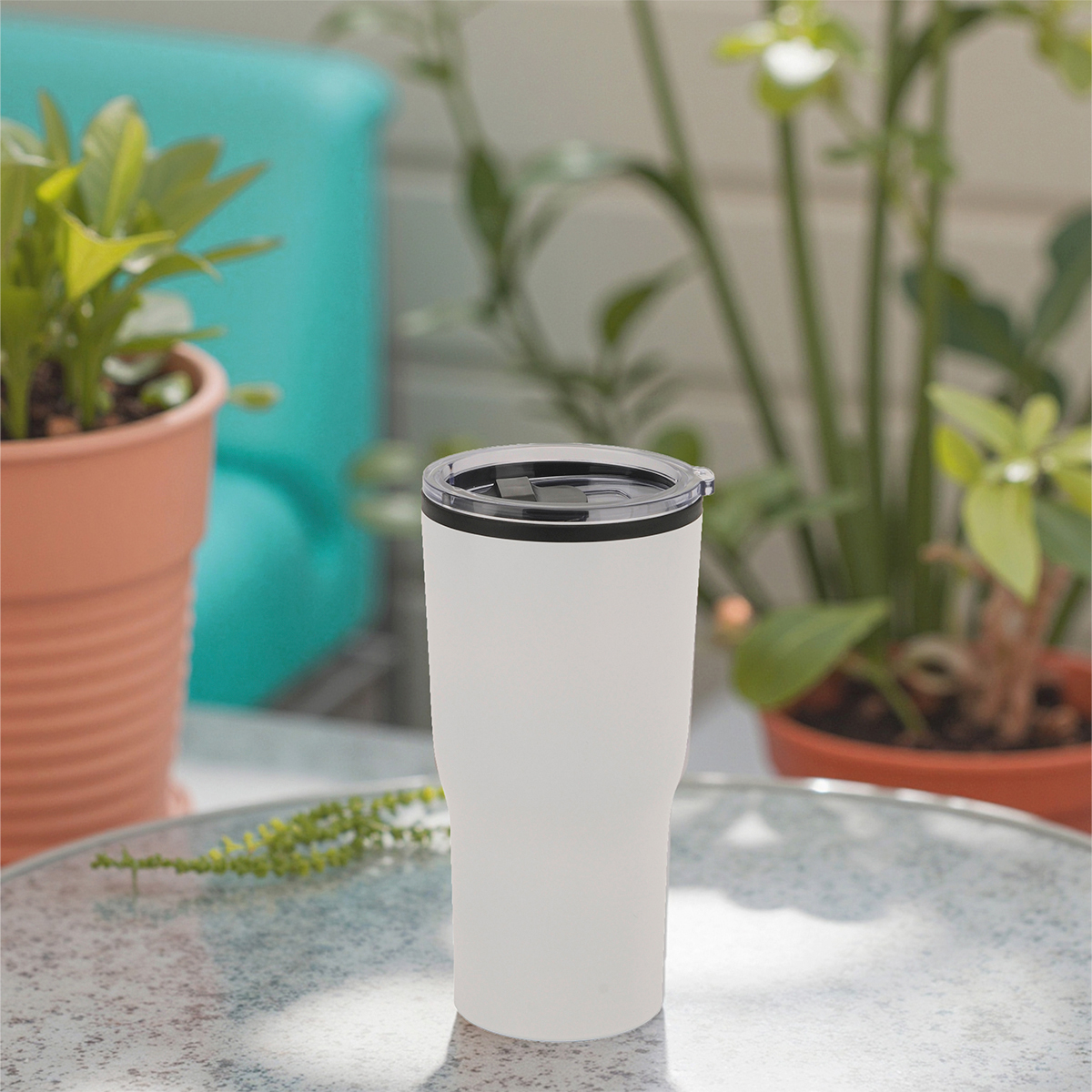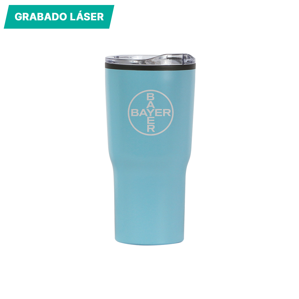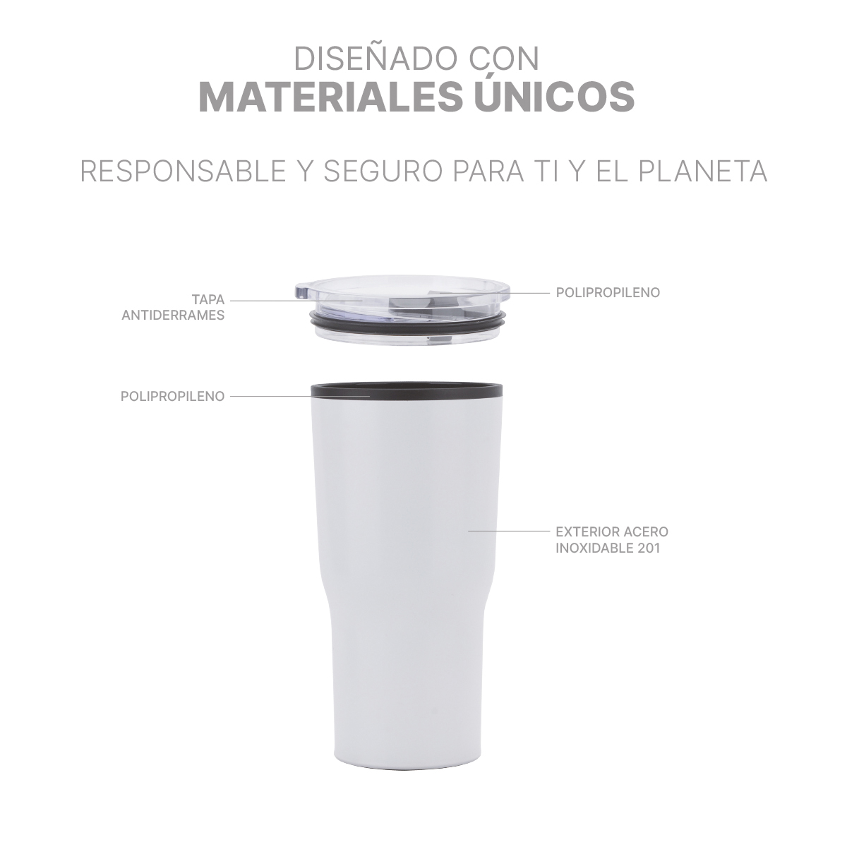 Termo Glarner. - Termo de doble pared con el interior fabricado en plástico y el exterior de acero inoxidable. Capacidad de 590 ml. (20 onzas). Incluye tapa transparente deslizable, con anillo de silicón para sellado.