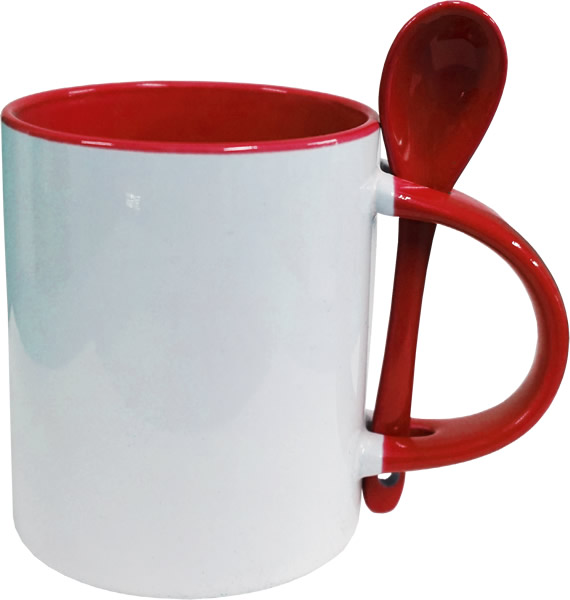 TAZA CON CUCHARA Material: Cerámica Medidas: 8.2x9.5cm Capacidad: 11oz. Empaque: 36 pzas. Descripción: Taza blanca para sublimación con interior, asa y cuchara de colores. COLORES 11oz COLORES: ROJO, AZUL COBALTO, AZUL CIELO, VERDE, ROSA, NARANJA, NEGRO