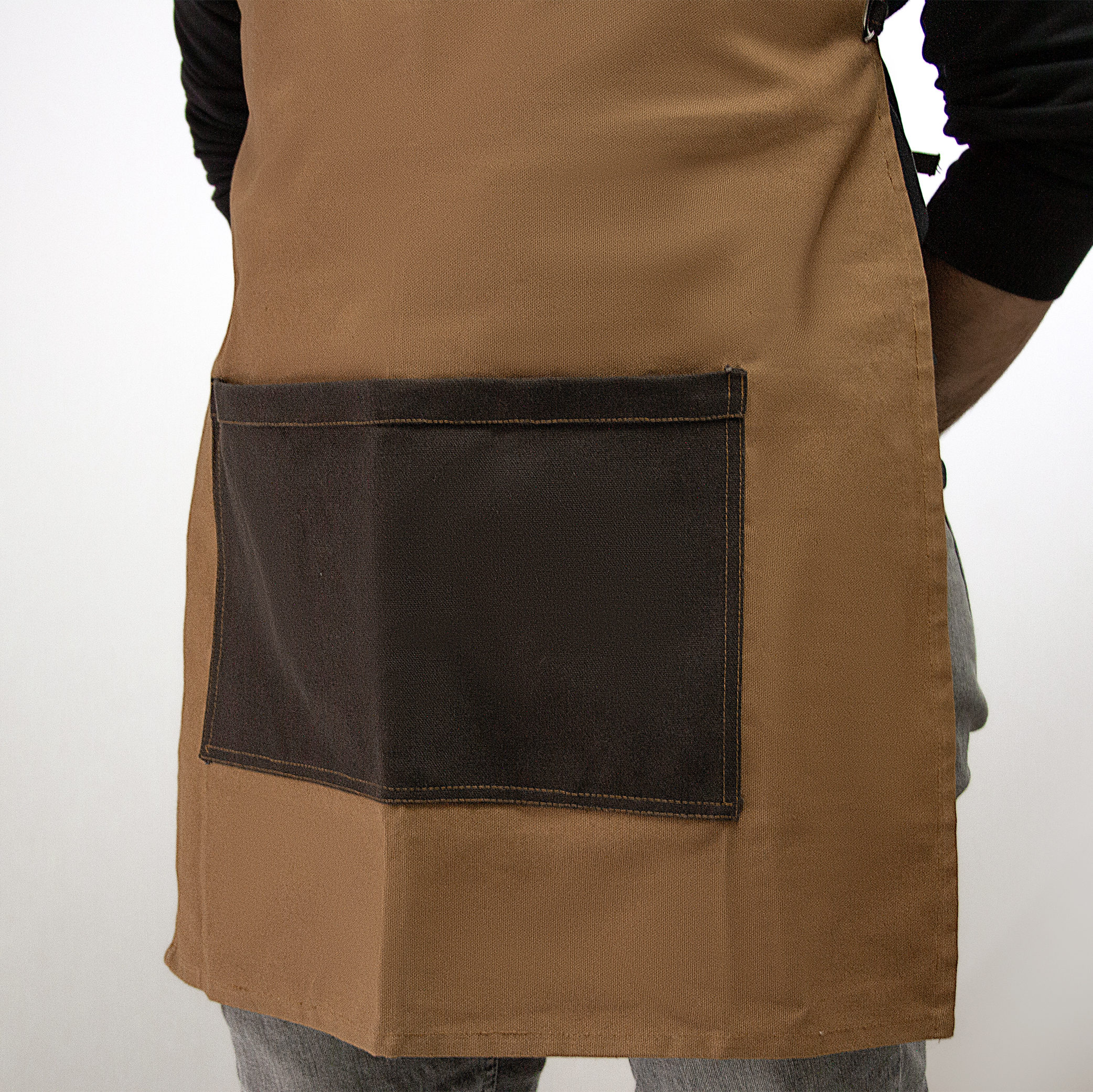 DALLAS Mandil de loneta con bolsa frontal, correa superior ajustable y cintas laterales para amarre a la cintura.