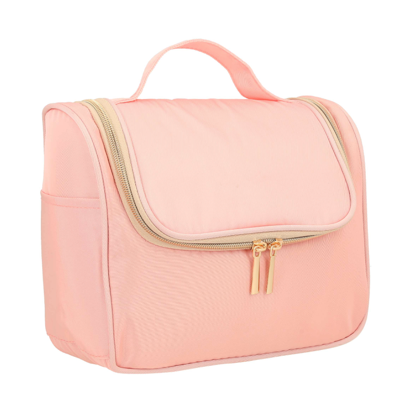 MILA Estuche de viaje, en la parte interior cuenta con un gancho, 3 separadores, 2 bolsas de malla laterales y un compartimento de malla con cierre en la parte superior, por la parte exterior incluye 2 bolsas laterales y asa.