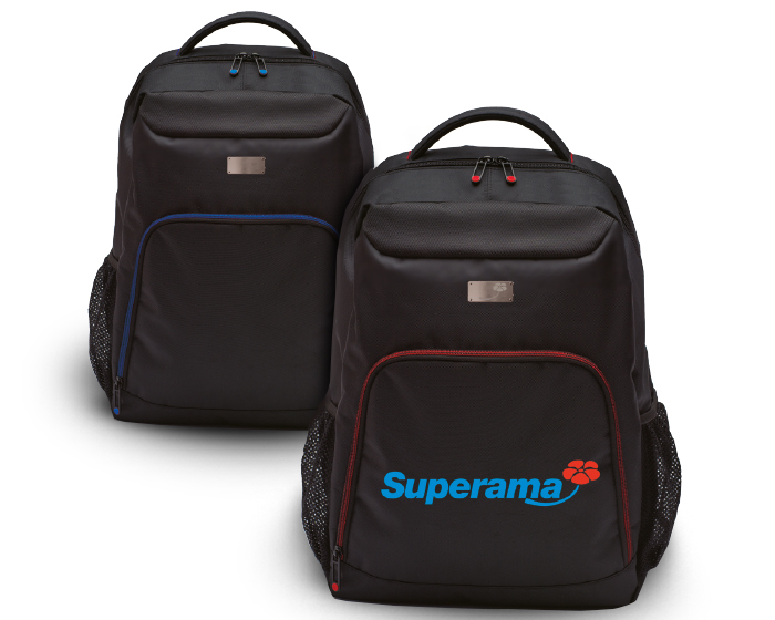 OSMAN - Mochila backpack porta laptop con 2 compartimentos exteriores y vivos en color. Cuenta con bolsa exterior de cierre al frente con compartimento para credenciales y bolígrafos, bolsillos laterales de malla, soporte acolchado para laptop de hasta 16 pulgadas, correas ajustables acolchadas y asa superior de transporte.