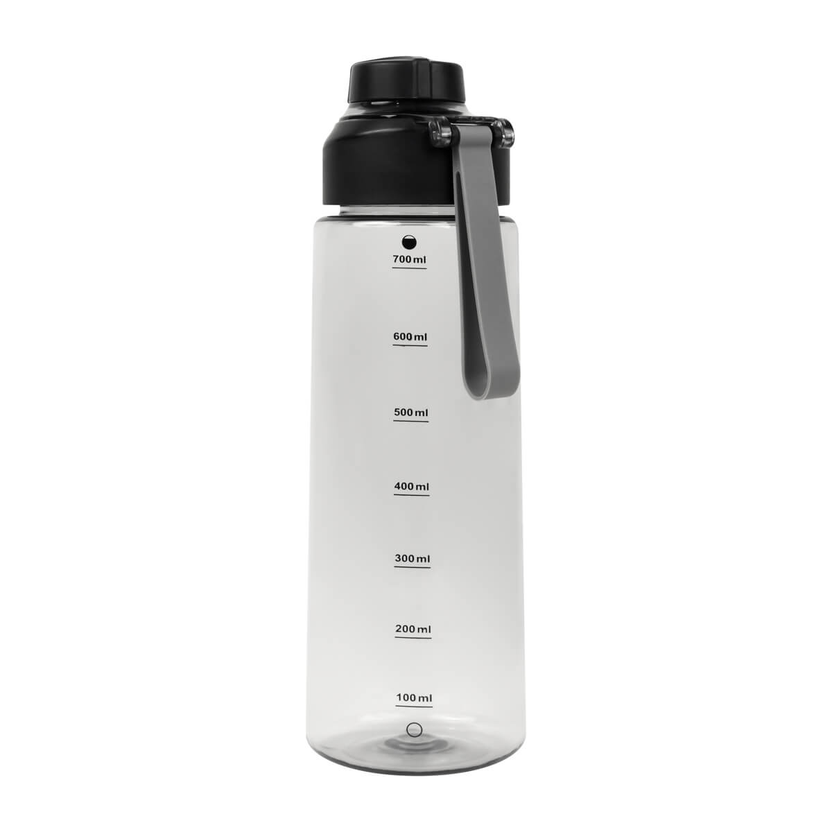 CILINDRO WODA - Cilindro de plástico de una pared. Tapa de plástico con sistema de rosca y sobretapa para la boquilla. Cuenta con asa de silicón para llevarlo cómodamente e indicador de mililitros. Perfecto para el día a día.