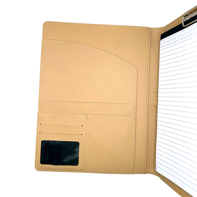 Porta Documentos Tulsa Porta Documentos Tulsa l Incluye block de hojas rayadas. l Interior con portabolígrafos y compartimentos organizadores l Apertura adicional en cubierta para documentos. l Colores: Negro. Material: Curpiel Medida: 32 x 24 cm. Impresión: Tampografía y Grabado Láser Área de Impresión: 10 x 4 cm.