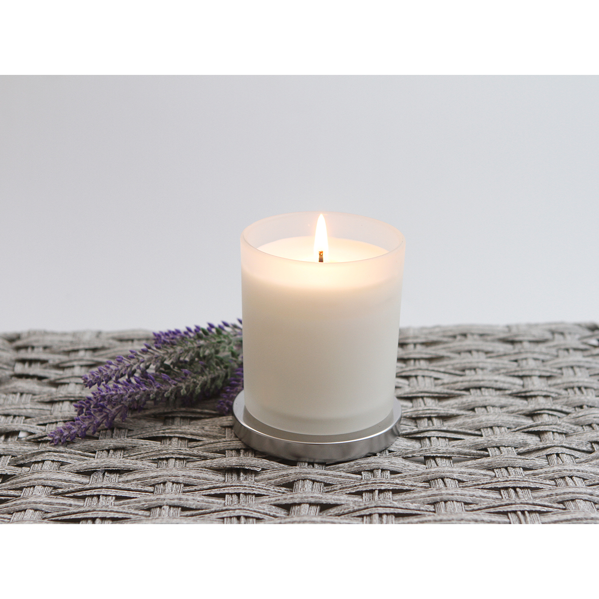 Vela Aromática. - Vela aromática de cera de soya con esencia de vainilla al 5%, contenedor de vidrio esmerilado y tapa metálica. Incluye caja de cartón individual. Es el regalo perfecto.