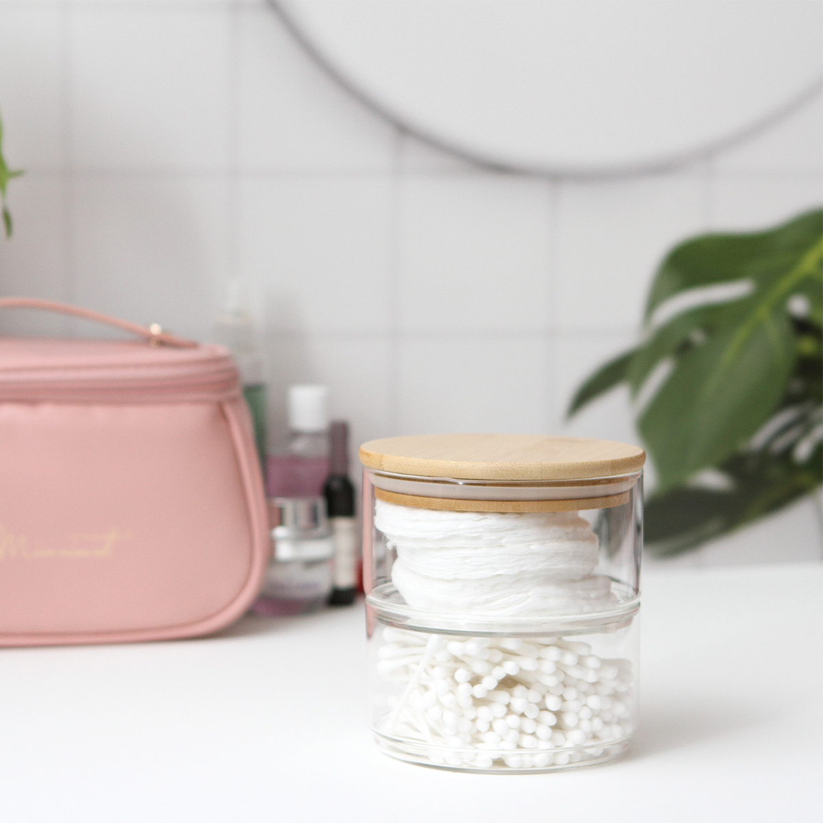 Set Quriyat. - Set de dos contenedores fabricados en vidrio borosilicato transparente con tapa de madera.