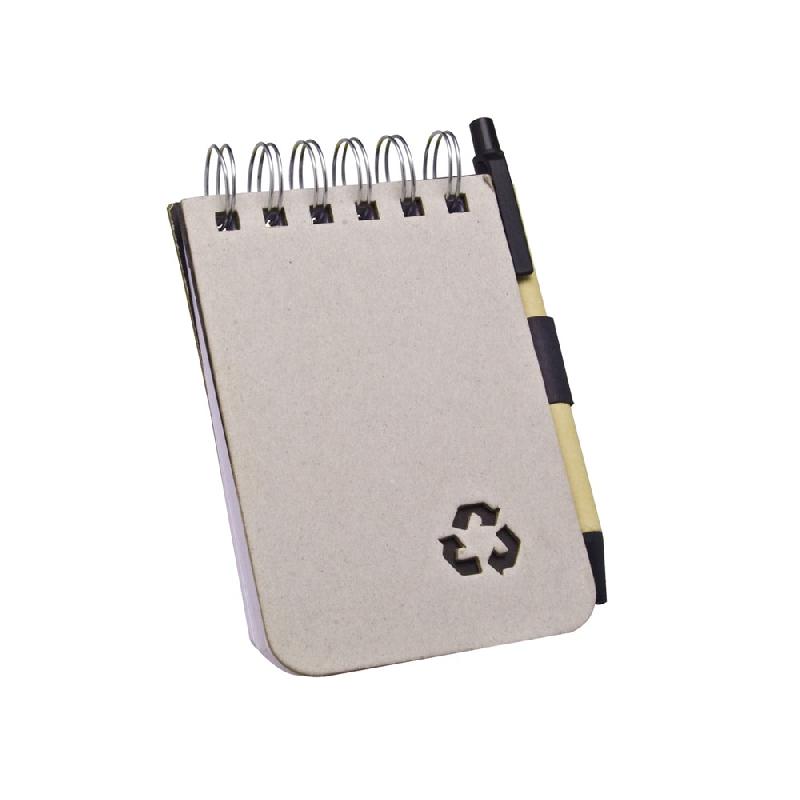 Libreta de bolsillo tipo block. Medidas: 8.5 x 12.6 cm Material: Papel reciclable. Empaque: Bolsa de celofán.