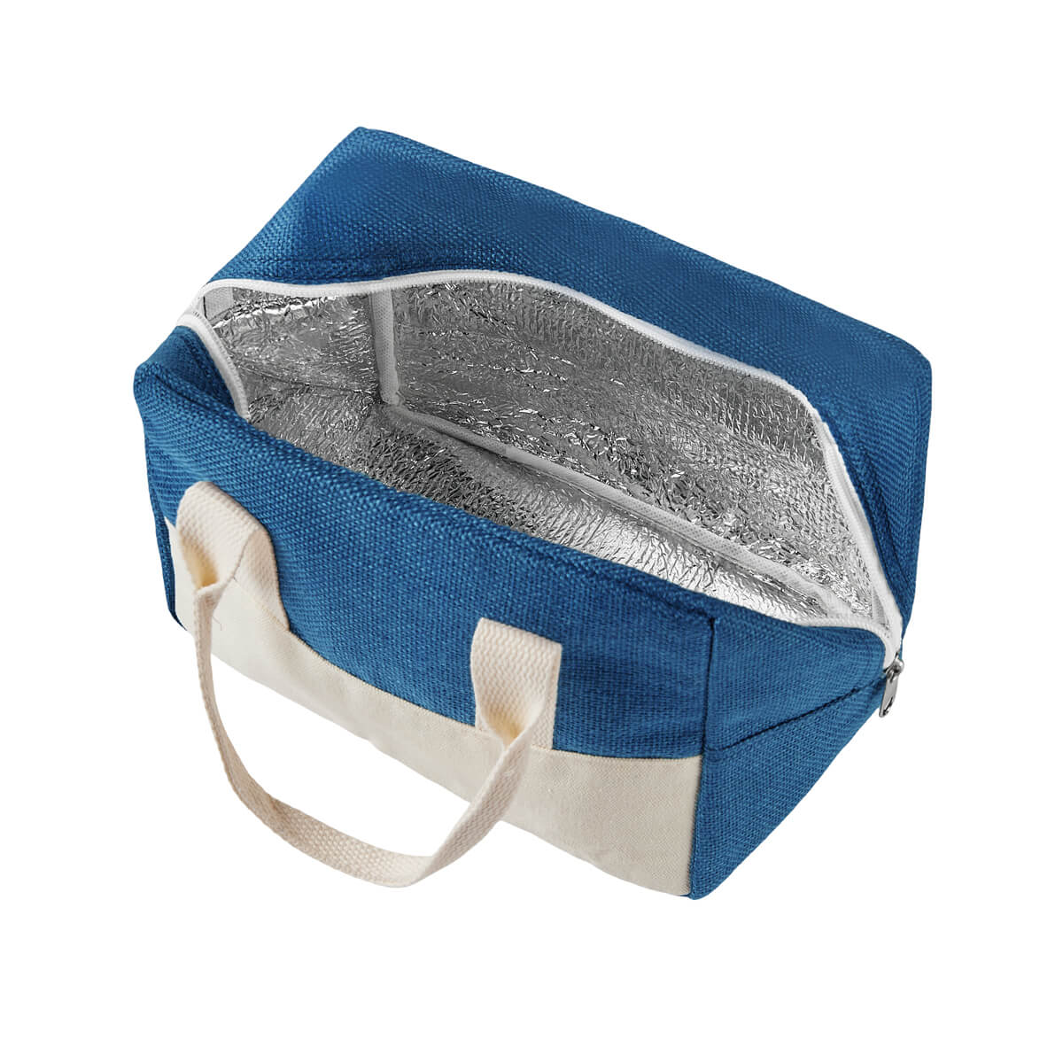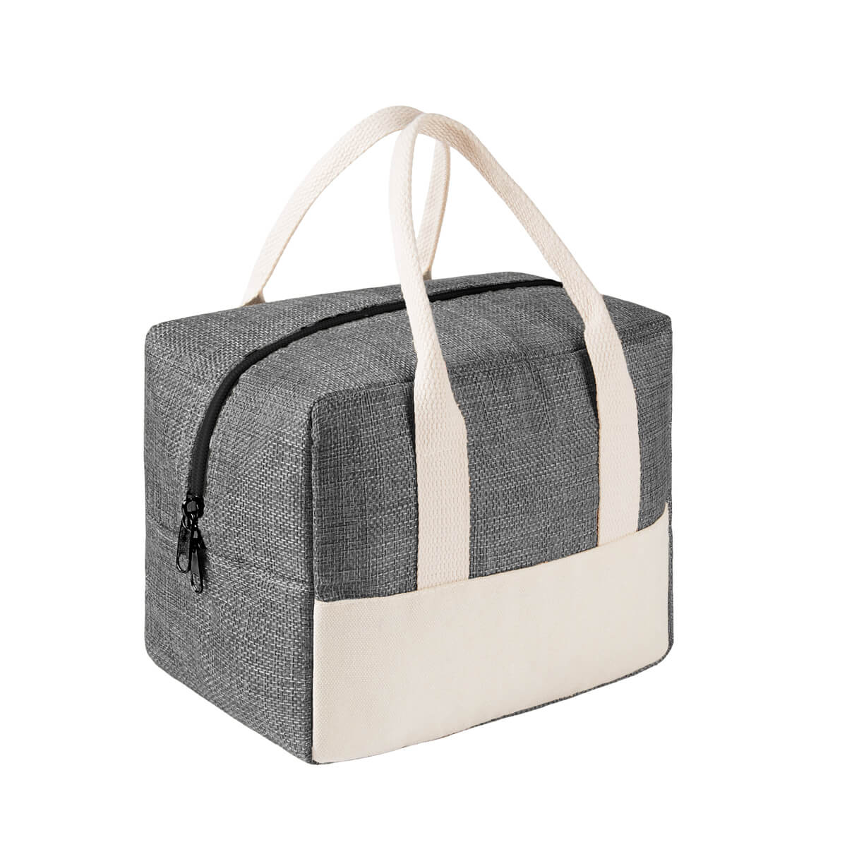 LONCHERA LEINEN - Lonchera con interior metalizado. Compartimento principal con cierre. Práctica, ligera y con un toque natural, esta lonchera es ideal para el día a día, ya que combina poliéster con detalles en algodón ecológico, una alternativa funcional con conciencia ambiental. Capacidad 6 latas.