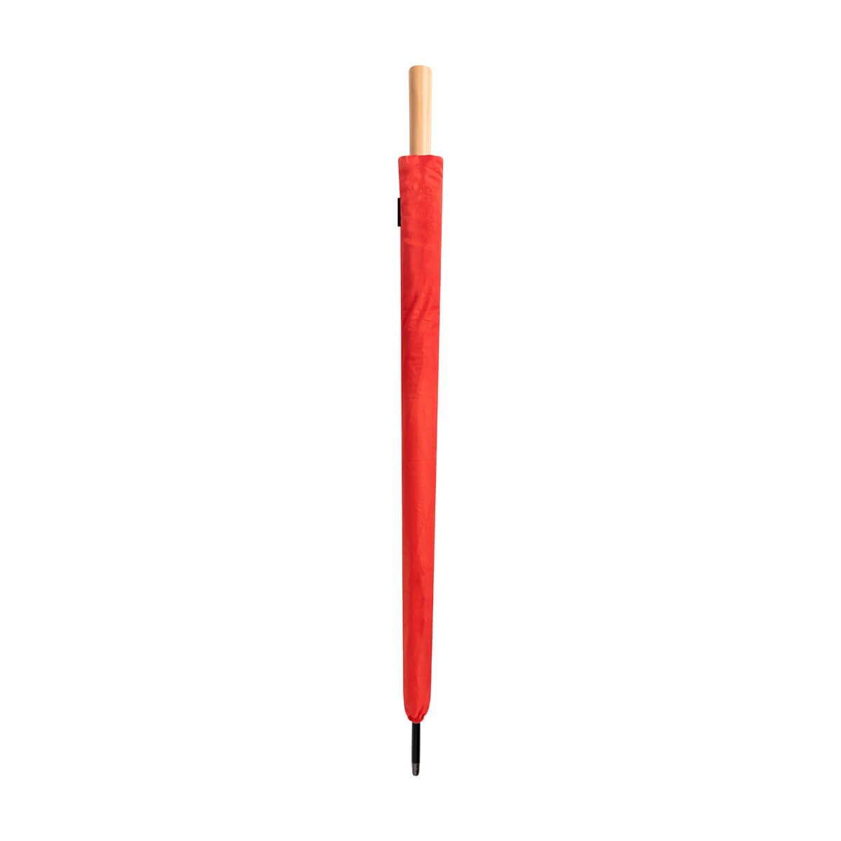 PARAGUAS NUA - Paraguas de 8 paneles con apertura automática. fabricado en plástico reciclado (RPET). Cuenta con mango y punteras de madera. Incluye funda protectora.