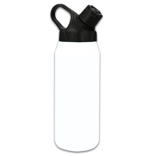 CAMARO Termo insulado al vacío con doble pared de acero inoxidable y acabado rugoso. Incluye tapa enroscable con boquilla y asa en la parte superior.