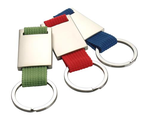 LLAVERO METÁLICO "CASUAL DAY" 8 x 2,8 x 0,5 cm Metal mate. Con detalle de tela en color. Presentación en caja de regalo.