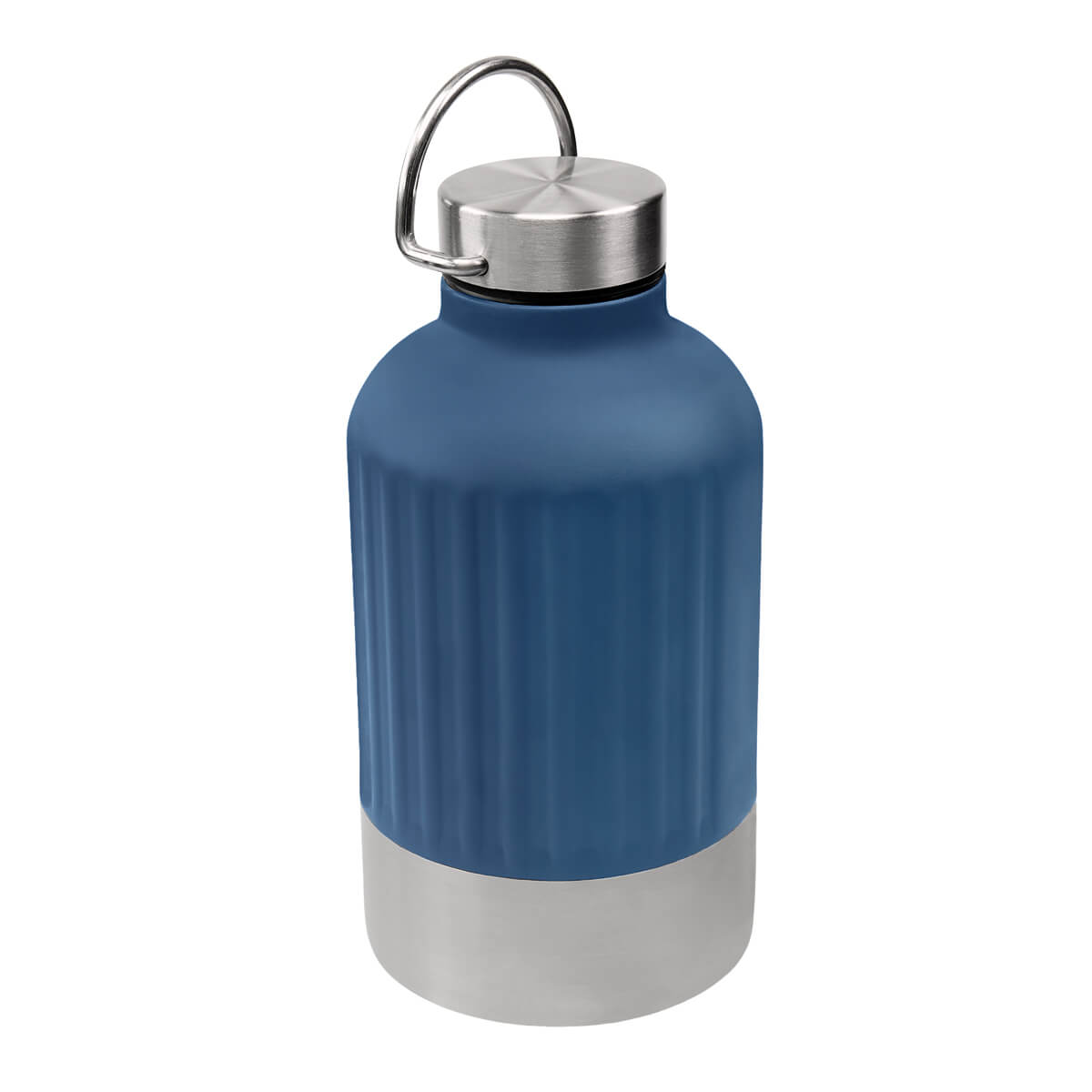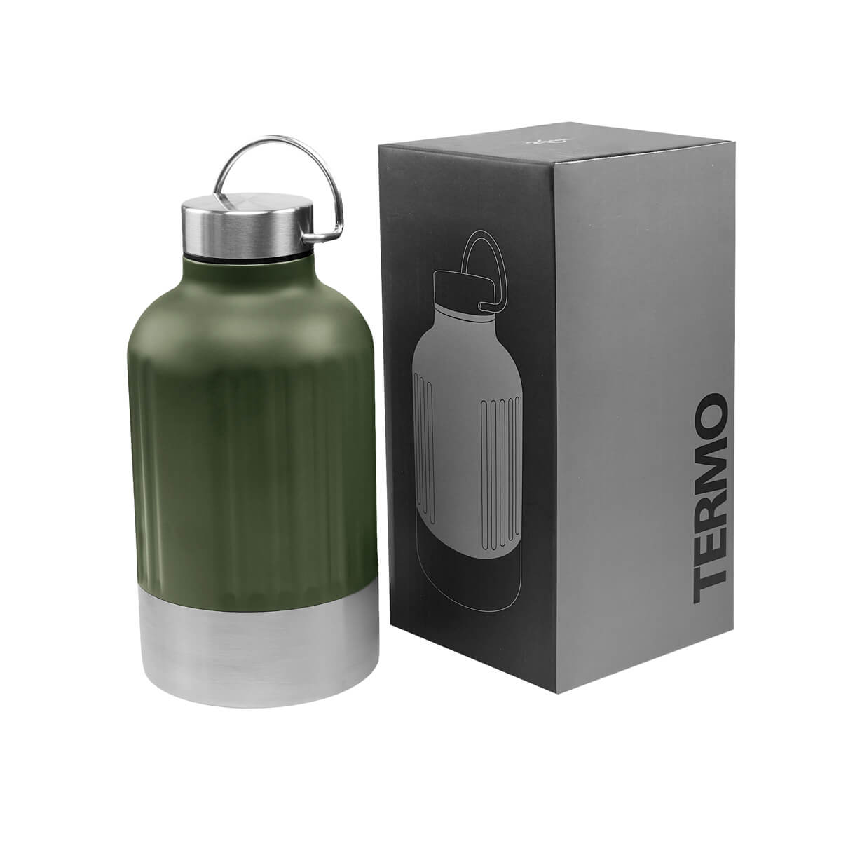 TERMO SKARN - Termo doble pared. Cerrado al vacío. Pared interna y externa de acero inoxidable. Tapa con sistema de rosca compuesta de plástico y acero inoxidable. Incluye un asa metálica para transportar con mayor comodidad. Su diseño bitono, combina color y modernidad, mientras que su textura metálica con patrón de líneas verticales, le da un toque original y vanguardista. Mantiene la temperatura caliente por 6 hrs y temperatura fría por 8 hrs. Capacidad 23 Oz. Base de 9 cm de diámetro. Incluye caja individual.