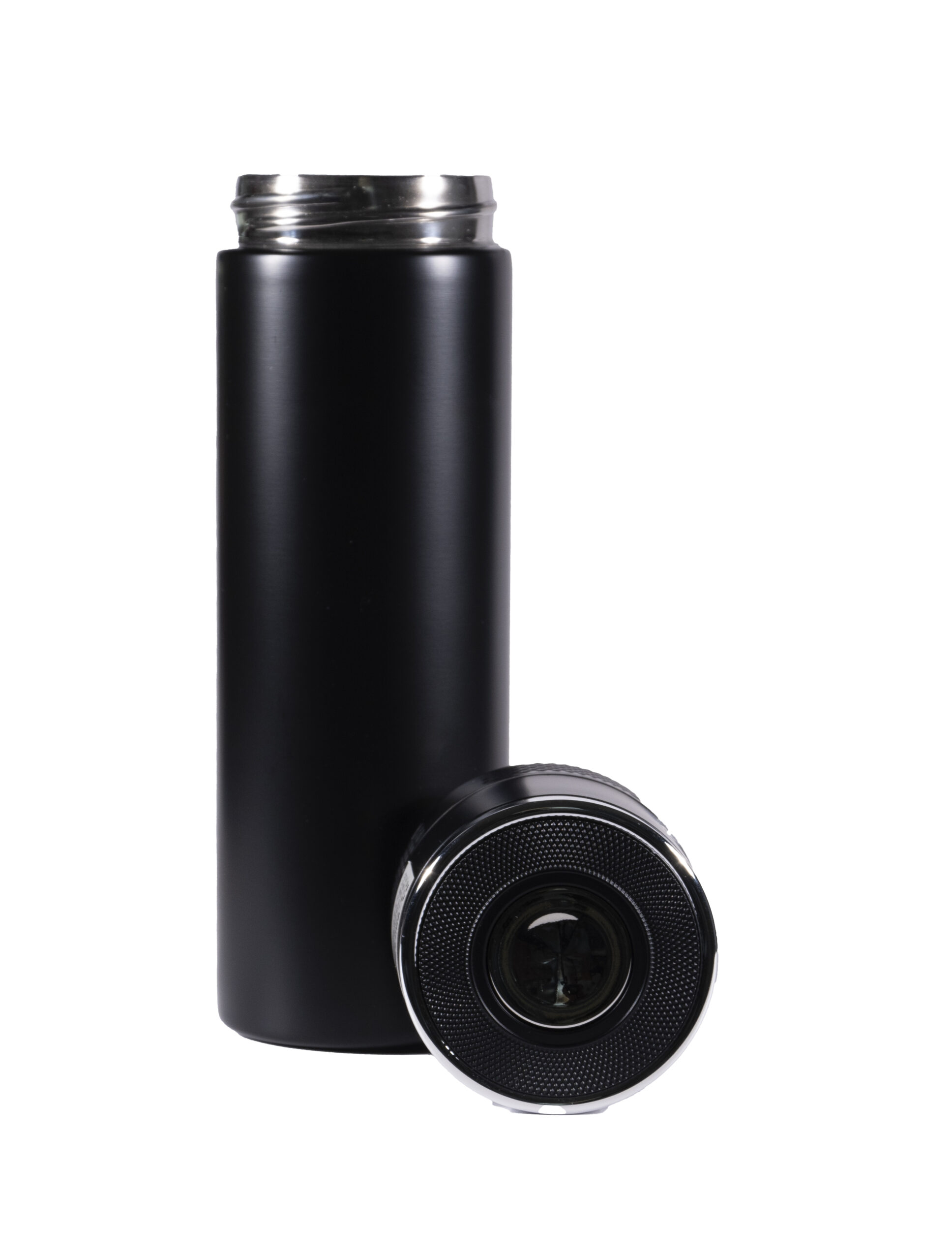 TERMO KAI CAPACIDAD DE 500 ML Termo fabricado en acero inoxidable de grado alimenticio, con doble pared y aislamiento al vacío. Cuenta con un mecanismo de apertura mediante un botón ubicado en la tapa. Incluye un filtro para té.