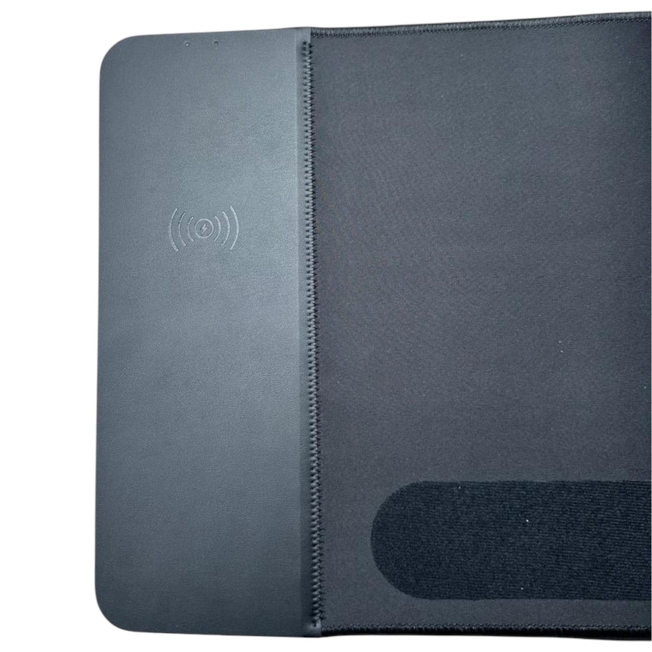 Mouse pad con cargador Wireless Qi de 15w, resistente al agua, antideslizante y con soporte ergonómico para la muñeca.