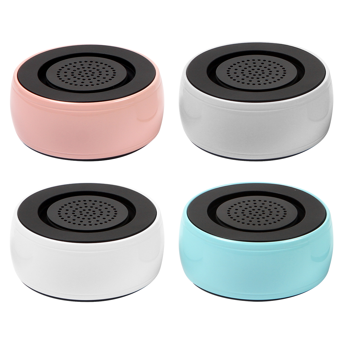 Bocina Sassari. - Bocina con conexión de sonido sin cables, portátil circular fabricada en metal y plástico, de tamaño compacto lo que la hace fácil de transportar, con radio FM, entrada auxiliar para audio y tarjeta TF.