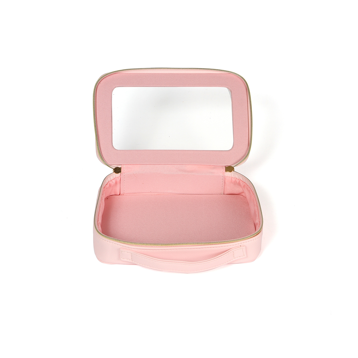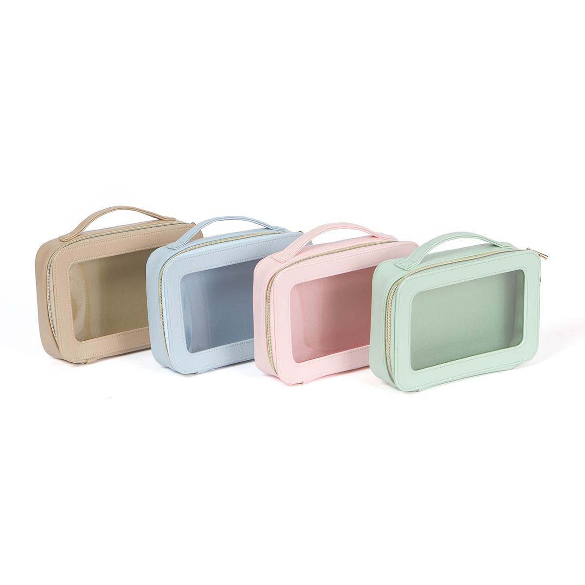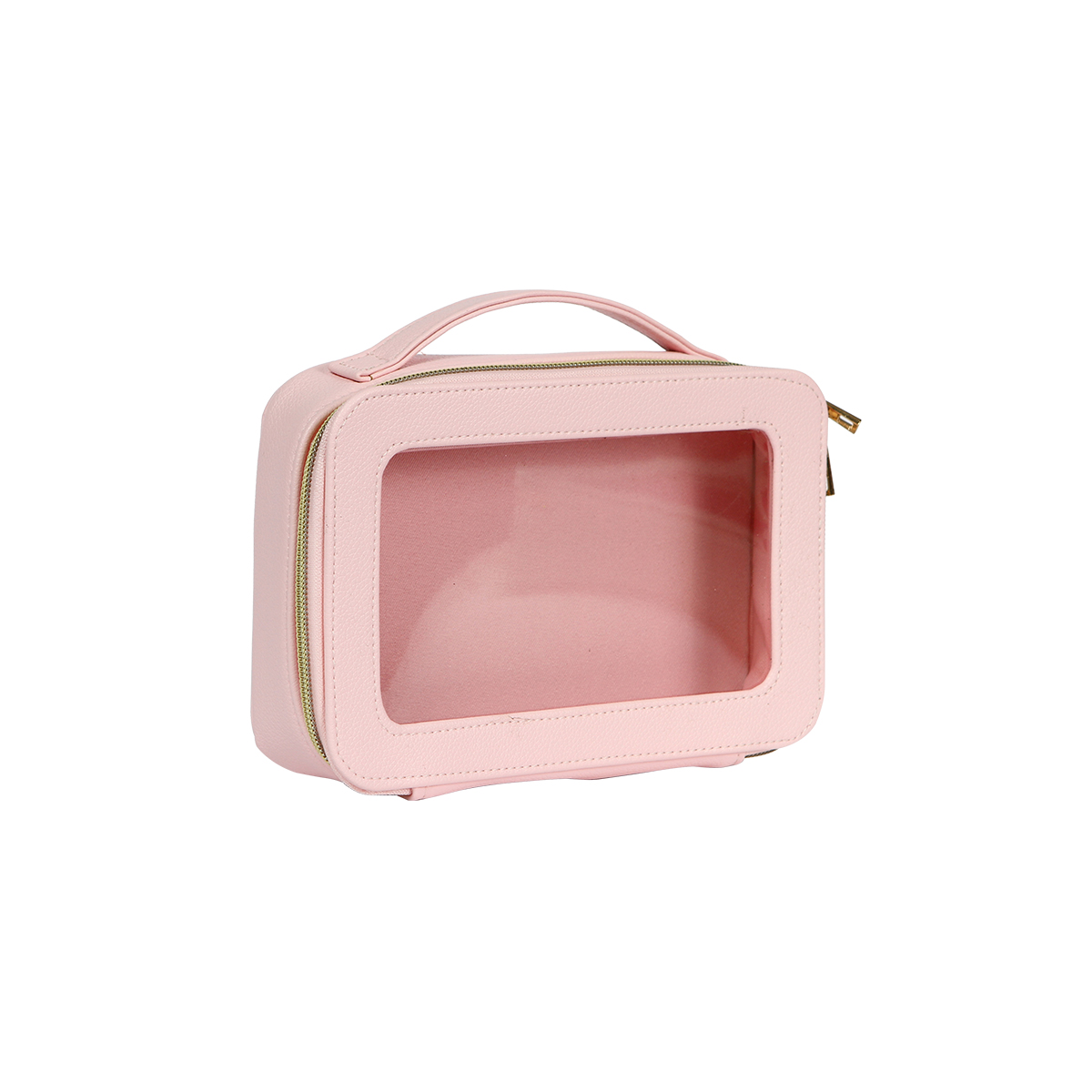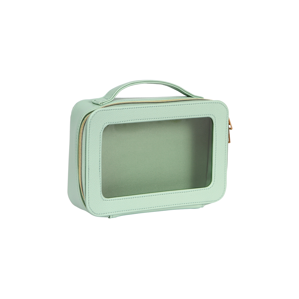 Cosmetiquera Gastein. - Cosmetiquera fabricada en curpiel con ventana traslúcida fabricada en plástico tipo PVC. Compartimento principal con cierre metálico. Cuenta con un asa en la parte superior para una mejor manipulación y traslado.